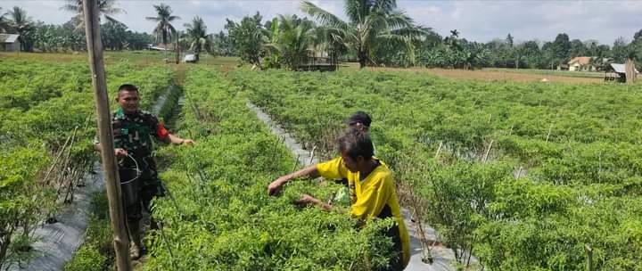 GSI.COM//Tebo-Jambi- Dalam rangka mendukung ketahanan pangan dan meningkatkan kesejahteraan petani, Babinsa Desa Cermin Alam, Kecamatan Tebo Ulu, Koramil 416-04/Pulau Temiang, Koptu R Situmorang, melakukan monitoring kegiatan panen cabe yang dilakukan oleh para petani di desa tersebut pada Kamis,(20/05/2024).